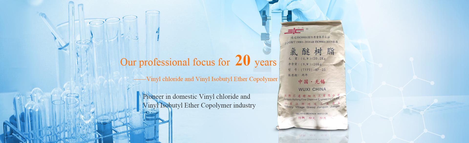 Jiangyin Huitong Fine Chemical Engineering Co.,Ltd. is a high-tech enterprise integrating R & D, production, sales and service, focusing on paint and ink raw materials. It is an early high-tech enterprise engaged in raw and auxiliary materials of paint and gravure ink in China, and a pioneer in the Chloroether resin industry. After its establishment in 2000, the company took the lead in successfully synthesizing Chloroether resin vc-ibve (vinyl chloride vinyl isobutyl ether) in China. Its synthesis process broke the situation that this technology has been monopolized by large foreign companies for a long time... 【Read More】